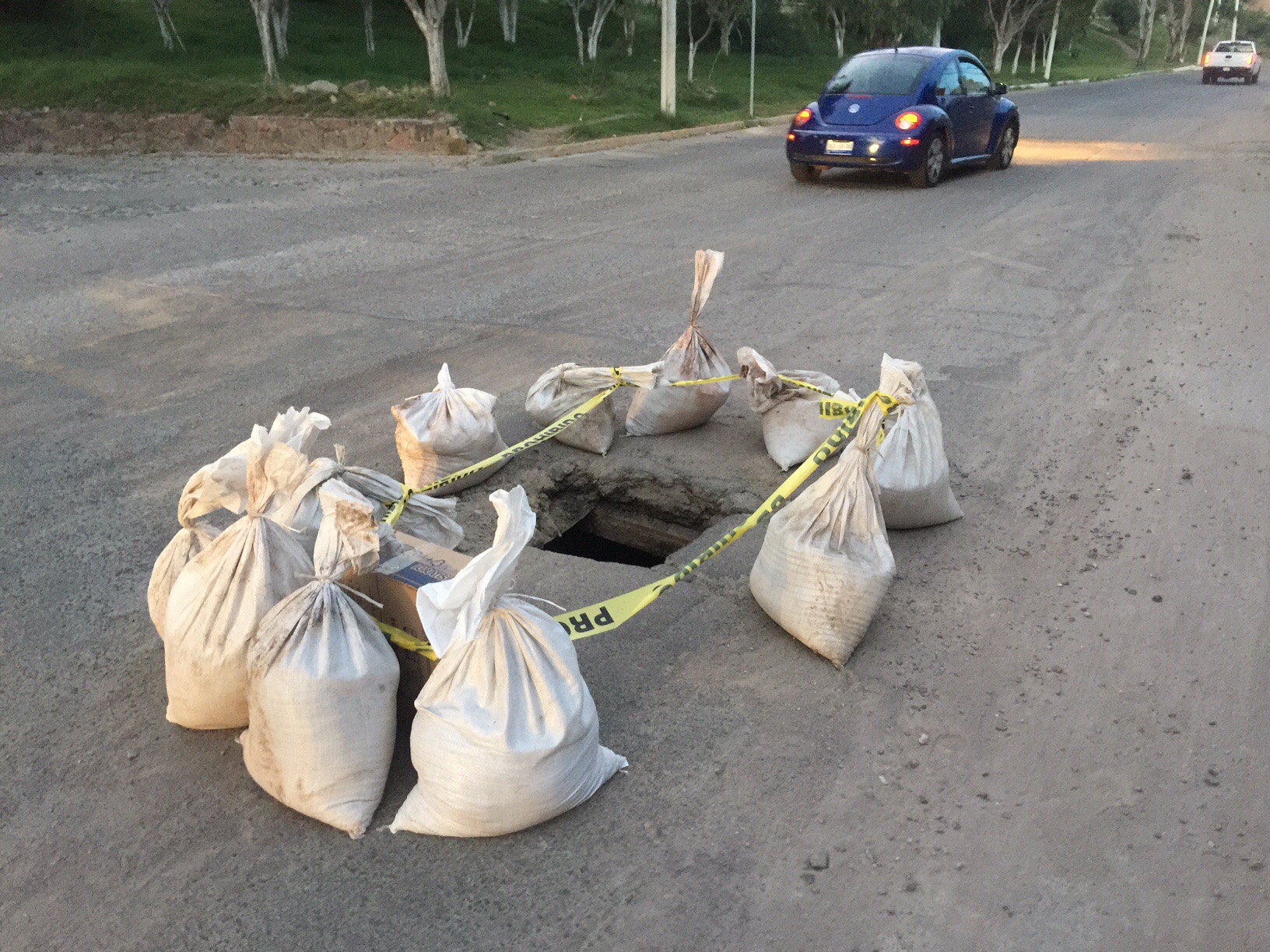 Vecinos de la colonia Hércules piden a las autoridades que repare una alcantarilla ubicada en Avenida Emeterio González, aseguran que tiene más de dos semanas abierta y solo le colocaron costales.Señalan que es una zona muy transitada y que representa un peligro para los automovilistas, esta zanja este casi frente al Panteón Municipal de Hércules. Debido a los costales, los conductores tienen que ceder el paso a vehículos que transitan en contraflujo, afectándola vialidad de la zona, piden se solucione de manera rápida. “Tiene más de una semana fácilmente, pero…