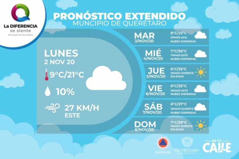 Para esta semana se prevén temperaturas mínimas de 6 grados centígrados y máximas de 28 grados centígrados Se estima la presencia de 54 frentes fríos, de los cuales se han presentado 11, de acuerdo a Francisco Ramírez, coordinador técnico de Protección Civil del Municipio de Querétaro. Consideró que será una semana fría y por eso pidió a la población tomar medidas de prevención y además indicó que la personal de protección civil realizar recorridos en las zonas vulnerables por el frío, con el fin de hacer entrega de cobijas y…
