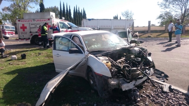 El incidente ocurrió en la carretera a Huimilpan, en el kilómetro 9+600, donde el sedán salía de la Carretera a La Noria y al no tener la precaución debida se le atravesó al volteo y sobrevino el choque.