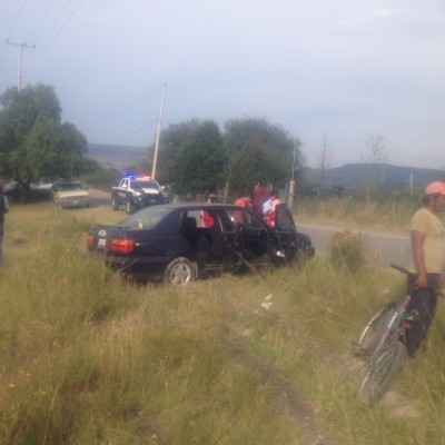 Debido al choque los ocupantes del vehículo compacto resultaron lesionados, al lugar arribo personal del CRUM quienes les brindaron atención médica.