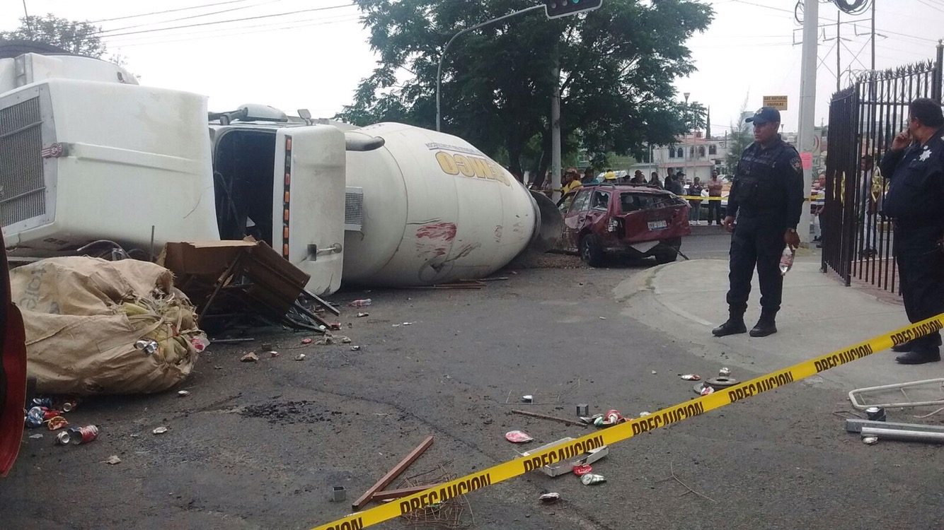 Luego de la colisión contra una camioneta, un taxi y un automóvil particular, la revolvedora quedó volcada y por ello inmediatamente se le avisó a las diferentes corporaciones de auxilio.