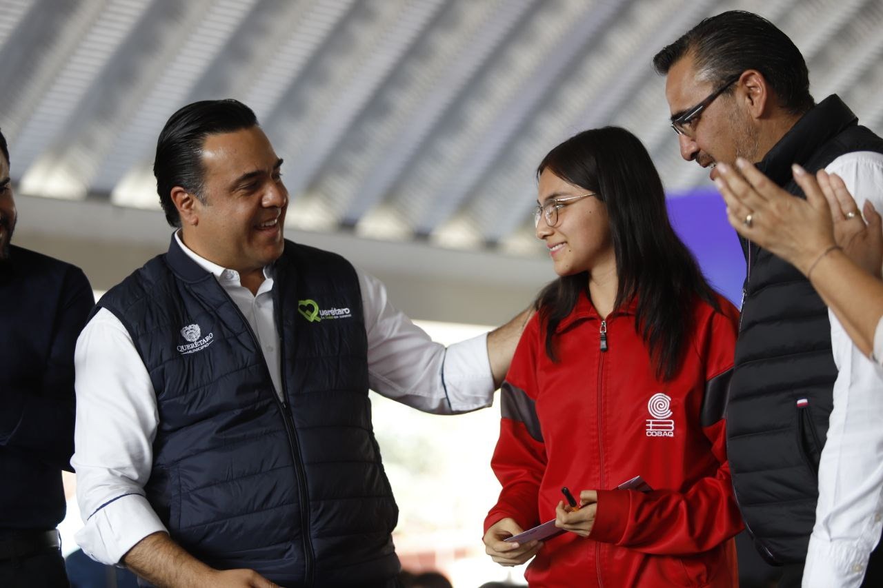 “Queremos que sueñen en llegar muy lejos, que tengan grandes sueños, porque si alcanzan ustedes esos sueños, Querétaro va a ser tan grande como los sueños que ustedes logren”, expresó el Presidente Municipal, quien estuvo acompañado por el Secretario de Desarrollo Social en el Estado, Agustín Dorantes Lámbarri, y el Director General de la COBAQ, León Enrique Bolaño Mendoza.