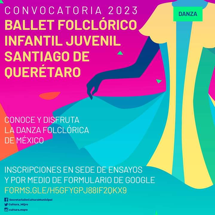 El Municipio de Querétaro busca a los próximos niños, niñas y jóvenes bailarines que quieran difundir la riqueza cultural de la danza folclórica de nuestro estado y país, formando parte de el Ballet Folclórico Infantil y Juvenil de la capital queretana, una de las Agrupaciones Artísticas Profesionales del Municipio.