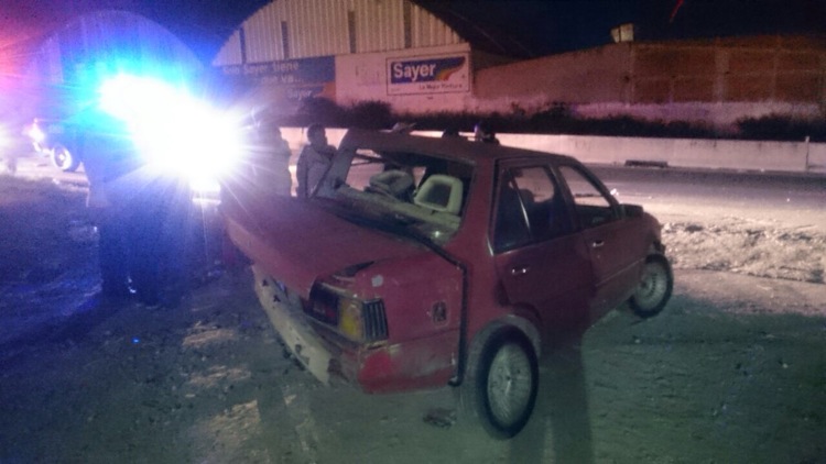 El hecho se registró como consecuencia del exceso de velocidad con que circulaba el conductor de un automóvil tipo hatchbak, el cual golpeó por alcance contra un sedán y derivado de eso, el primero en mención acabó volcando y dando un giro completo; con lo que la unidad quedó destrozada.