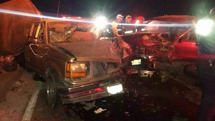 Las unidades tipo pick up colisionaron debido a que uno de los implicados iba alcoholizado e invadió el carril contrario, resultando el fuerte accidente.