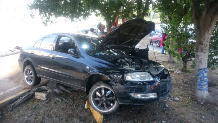 Tras haber causado un choque por alcance contra un automóvil Aveo, el conductor de un automóvil tipo Scala acabó chocando un árbol de una jardinera, todo esto sobre la lateral de la México-Querétaro entre el Papanoa y Corregidora Norte.