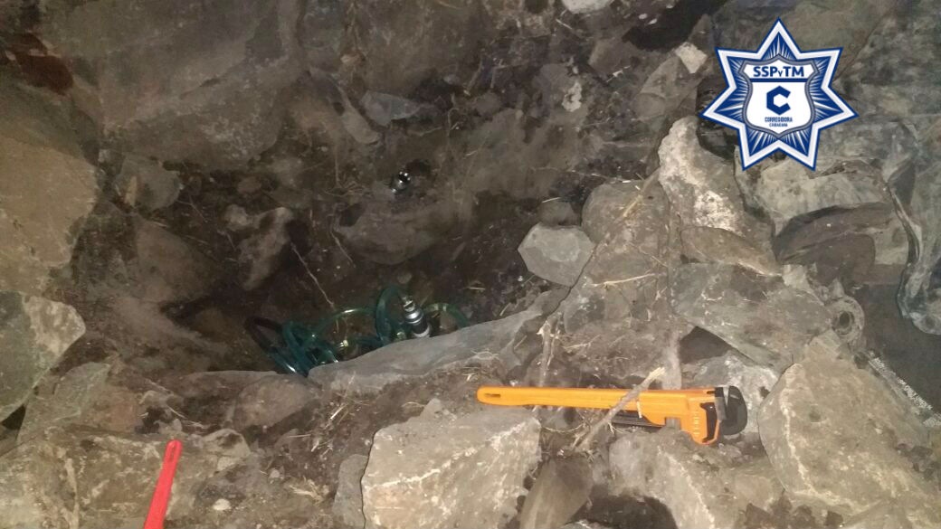 En el terreno, también se localizaron herramientas y una excavación de aproximadamente 50 centímetros con conexión a una manguera de unos 3 metros de largo y 1 pulgada de diámetro conectada al ducto de PEMEX por medio de una llave de paso, pero no se encontró a ninguna persona en las cercanías que pudiera estar relacionada con el hecho.