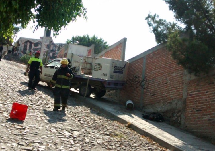 El choque de una camioneta transportadora de gas L.P., provoco la movilización de los cuerpos de emergencia después de que se impactara contra una barda en la colonia Menchaca II.El incidente se presento en la calle Río Mayo esquina con Río Purificación, debido al impacto algunos cilindros salieron de la camioneta y rodaron por las calles.