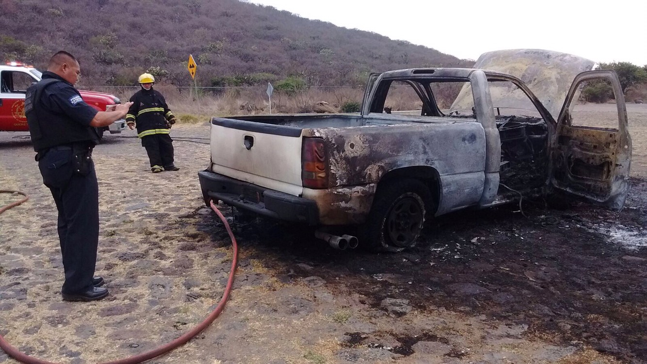 Calcinada quedó una pick up que transitaba por la Carretera a Huimilpan, cerca del Parque Cimatario, donde un cortocircuito acabó por consumir la unidad debido a que el conductor y sus dos hijas no tuvieron como apagarlo.