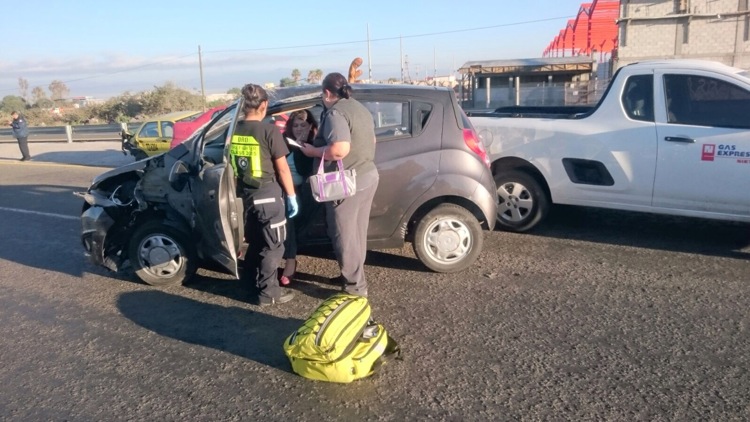 El incidente se presentó primero entre un Chevy y una camioneta, siendo la unidad compacta la que tuvo daños materiales importantes en la carrocería.