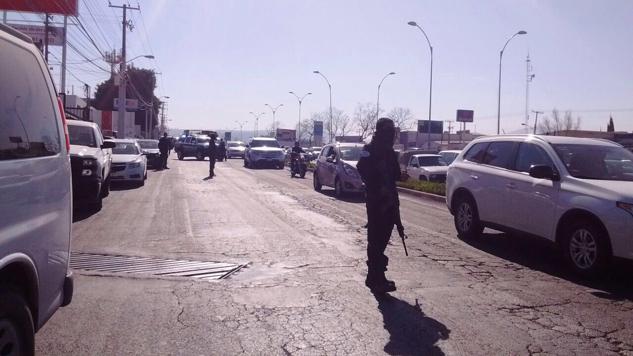 La Fiscalía General del Estado lleva a cabo un cateo en el lote de compra venta de automóviles Quintana Motors, en el Boulevard Bernardo Quintana, en Loma Dorada.