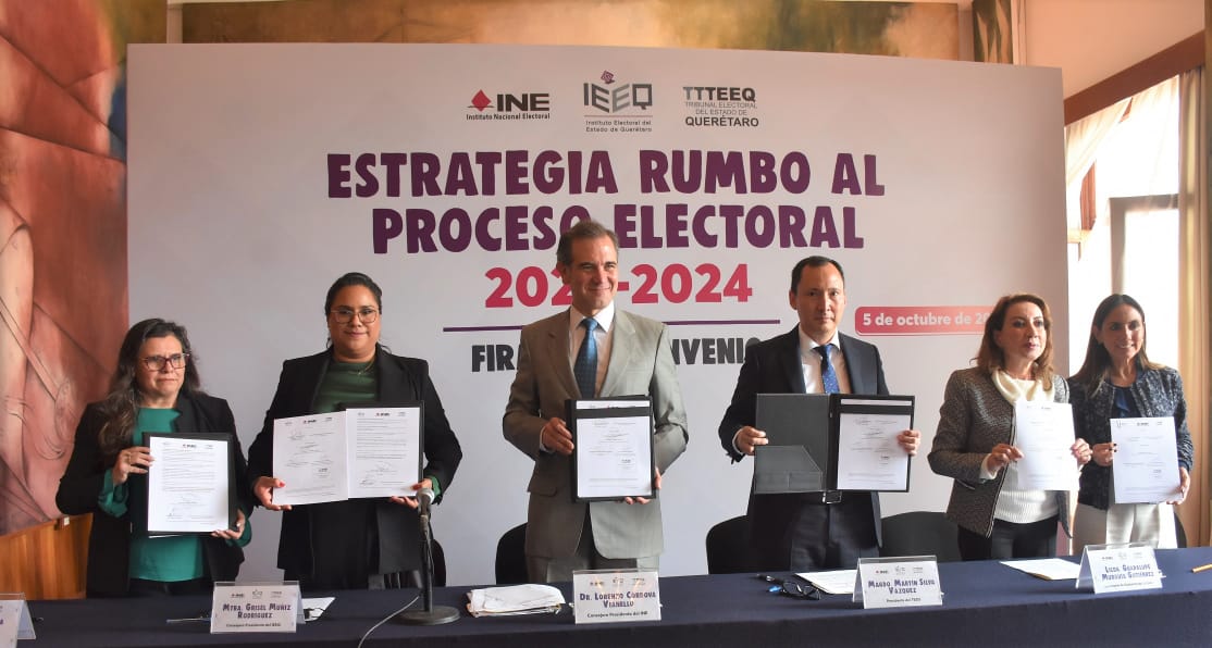 Con el objetivo de fortalecer la participación cívica de las y los queretanos que radican fuera del país, el Instituto Electoral del Estado de Querétaro (IEEQ) firmó convenios de colaboración con las organizaciones Fuerza Migrante en Acción A.C. y Migrantes Unidos en Caravana A.C.. Esta alianza busca promover los derechos político-electorales de la comunidad migrante antes, durante y después del proceso electoral local. Durante el acto protocolario, la consejera presidenta del IEEQ, Grisel Muñiz Rodríguez, enfatizó que “la democracia no termina en nuestras fronteras”, al subrayar la importancia de garantizar…