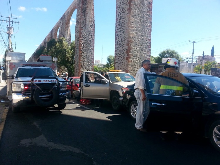Un automóvil compacto y dos camionetas protagonizaron un aparatoso accidente a la altura de Jardines de Querétaro, sobre Calzada de los arcos, en dirección al centro.