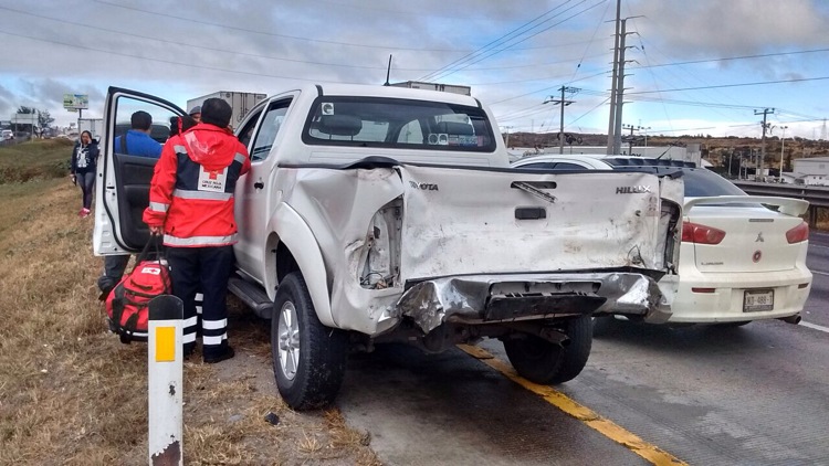 El choque ocurrió justo frente al parque industrial Bernardo Quintana, dirección Querétaro, donde colisionaron debido al tránsito lento, pero sobre todo, a que no se guardó la distancia y precaución necesaria, esto de parte del operador de la camioneta pick up.