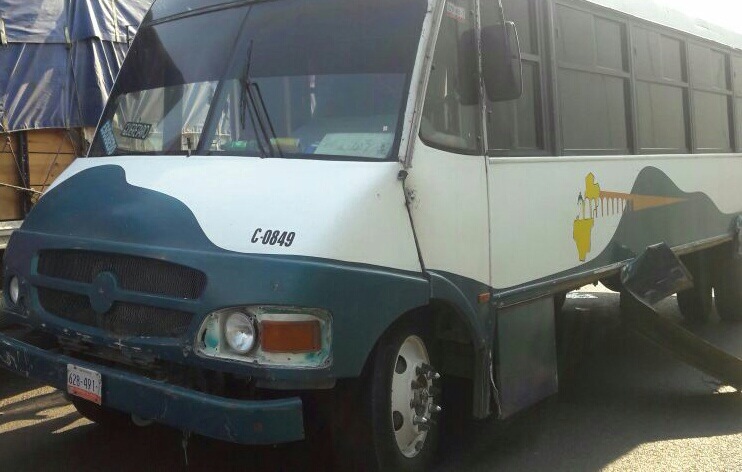 El suceso de dio de modo que la unidad compacta iba circulando sobre Cimatario y al cruzar el puente debajo de la autopista se encontró con el camión de pasajeros, por lo que se metió aparatosamente en la carrocería del transporte.