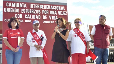 La Directora General del Sistema Estatal DIF, María Eugenia Bueno Zúñiga, dio el banderazo de salida a los más de 200 adultos mayores que participaron en la tradicional Caminata Intergeneracional “Uniendo Esfuerzos por una Vejez con Calidad de Vida”, que se realizó en el circuito exterior del Estadio La Corregidora.