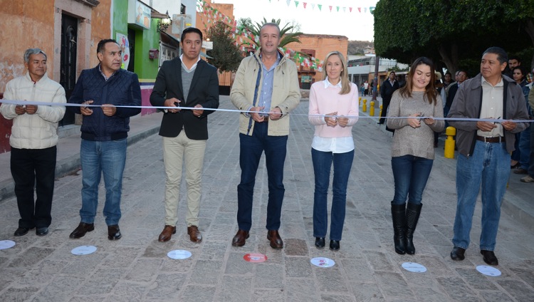 En esta primera obra, cuya inversión es superior a los 9.5 millones de pesos, se realizó la construcción de pavimento con adoquín de cantera labrada a mano por cantereros de El Marqués. Se realizó guarnición trapezoidal de concreto y losa de cantera en banqueta. Asimismo, se habilitó el drenaje y la red de agua potable.