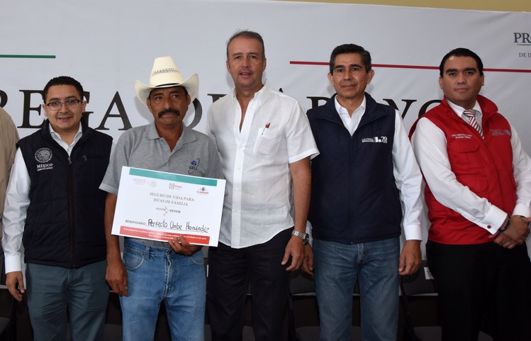 Por su parte, el Delegado Federal de PROSPERA, Fernando Castillo Díaz, afirmó que las beneficiarias del programa podrán acceder al Seguro Popular: “todas las familias de PROSPERA tienen acceso al Seguro Popular, este también es un beneficio para las familias de PROSPERA, en el tema de alimentación hoy estamos incorporando más familias a la leche Liconsa, estamos incorporando familias al seguro de vida para jefas de familia y lo que queremos es que ustedes tengan mejores beneficios, más oportunidades para el desarrollo humano y hoy estaremos entregando 1 millón 300 mil pesos en materia de alimentación y educación”.