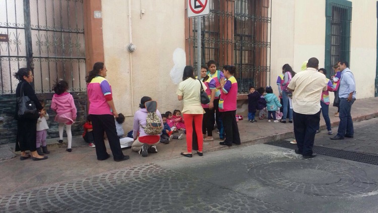 Fue en cuestión de minutos que personal del Cendi Petit desalojó el inmueble antes señalado, mientras elementos de protección civil verificaban la situación de riesgo.
