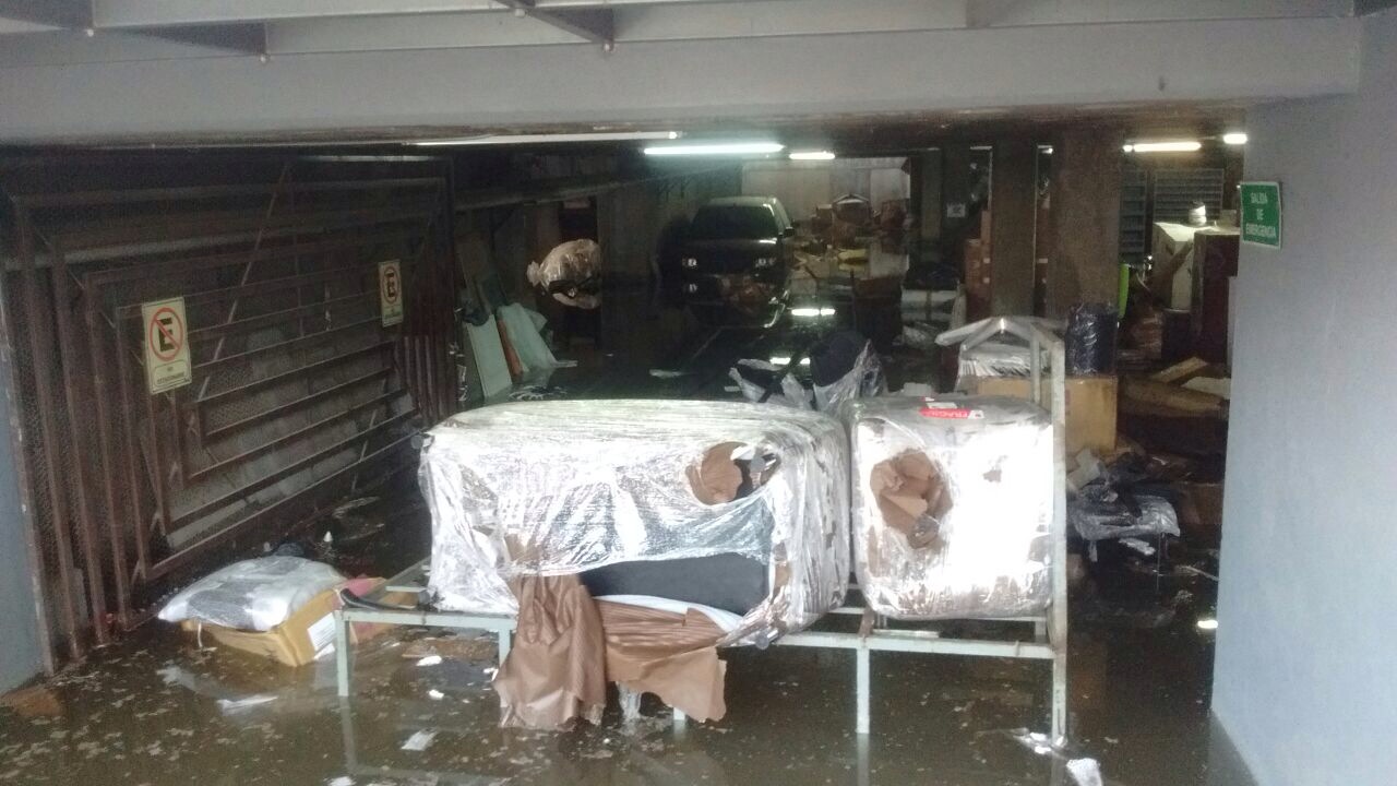 La fuga de agua vertio el líquido al subterráneo de una mueblería, por lo cual esta registro pérdidas millonarias de equipo y tres vehículos.