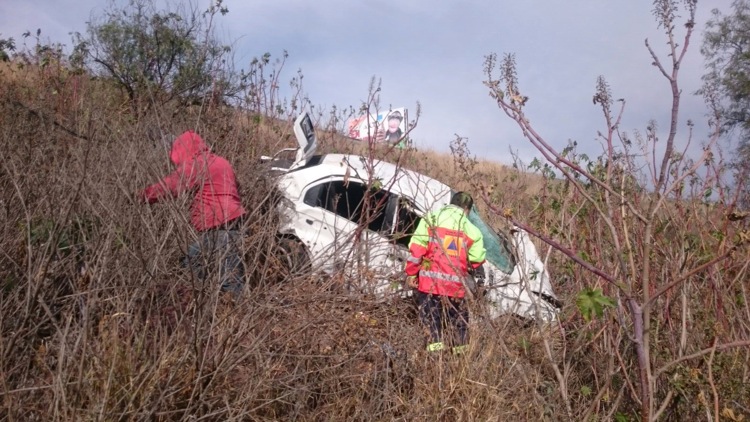 El hecho se presentó en dirección a Querétaro, justo en el kilómetro 205, donde el conductor de un automóvil tipo Aveo salió del camino a tal velocidad que los dos tripulantes salieron expulsados.