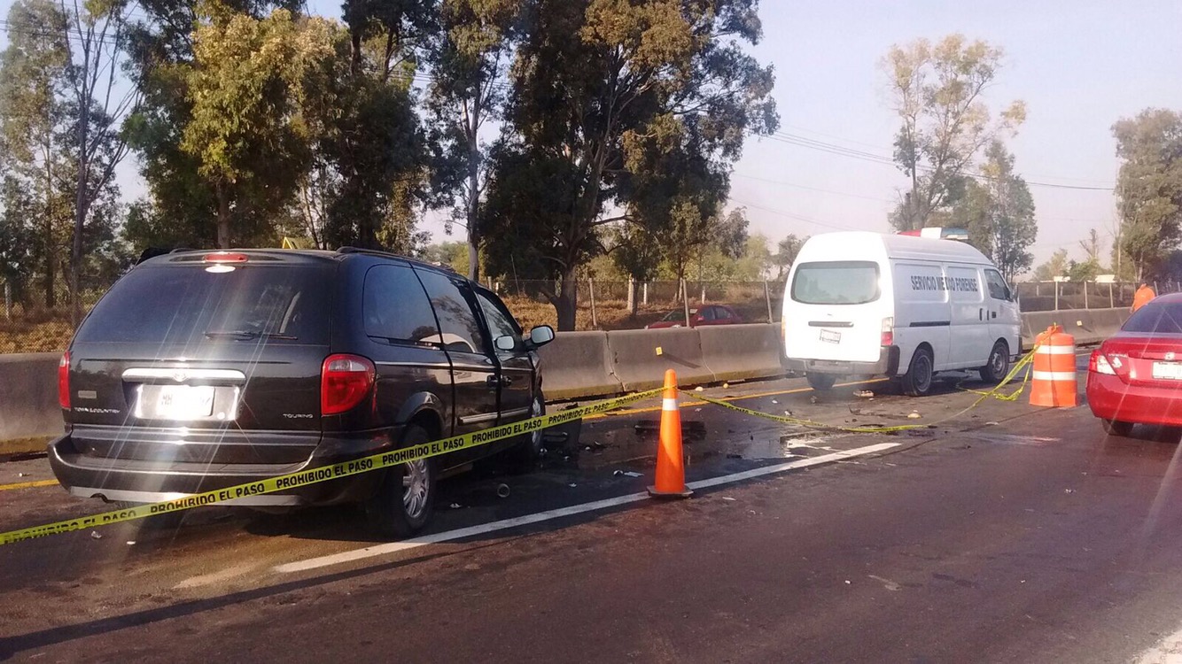 El hecho se produjo en el kilómetro 2 de la vialidad, en dirección a Guanajuato, esto al momento en que un tracto camión chocó contra una camioneta que abanderaba a ciclistas peregrinos, tras el choque ambas unidades frenaron y eso provocó que otra camioneta que venía detrás del tráiler no alcanzará a realizarlo y se estampó contra el remolque.