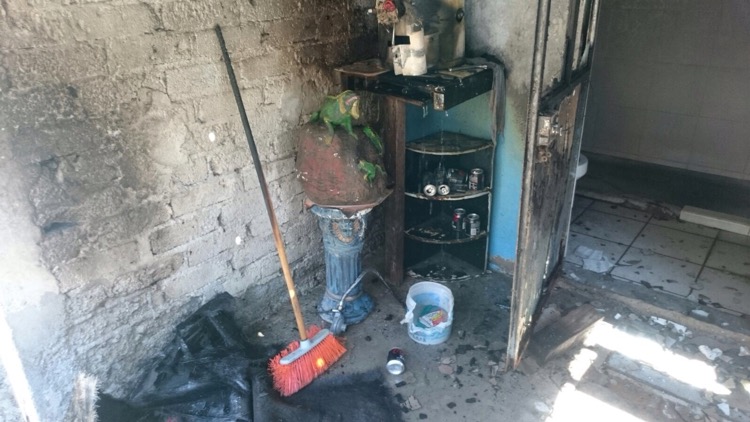 Un fuerte flamazo en la calle Chóferes de la colonia San Pedrito Peñuelas dejó a una persona lesionada y todo un cuarto de lavado consumido por las llamas, esto tras un descuido con una fuga de gas.