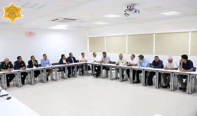 Durante la reunión, Ferrusca Ortiz presentó las acciones de seguridad de carácter operativo que se desarrollan en la dependencia, así como las estrategias de prevención que se están implementando en cada colonia para restablecer el tejido social.