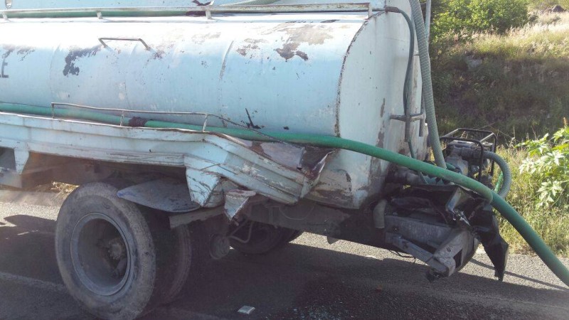El choque fue tal que la camioneta se quedó incrustada debajo de la pipa, por lo que el conductor y su hijo resultaron afectados, siendo el menor el que presentaba heridas que ameritaron su traslado inmediato al hospital.
