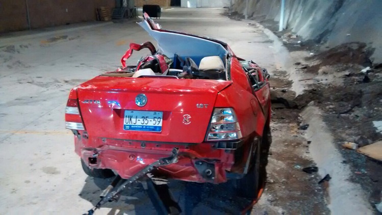 La unidad que tripulaba saltó de varios metros de altura hasta terminar totalmente dañado en el estacionamiento de un centro comercial.