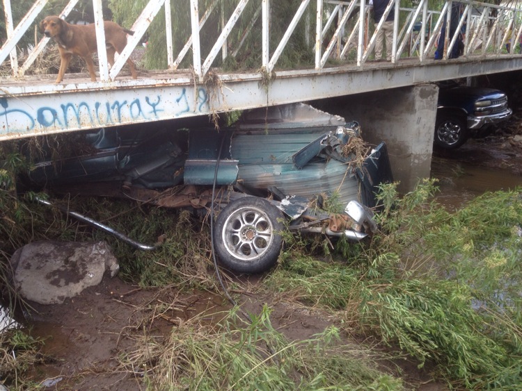 Algunas personas amarraron con cuerdas sus vehículos, evitando así que la fuerza del agua se los llevara, las unidades afectadas quedaron entre los puentes y arboles.