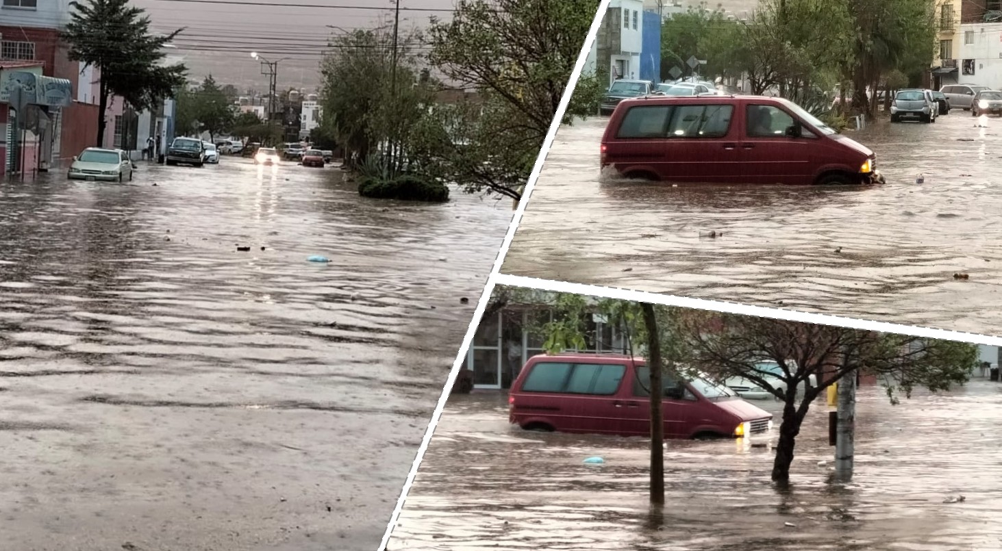 Las lluvias registradas la tarde de este lunes, provocaron inundaciones en la avenida principal de la colonia La Pradera, municipio de El Marqués.