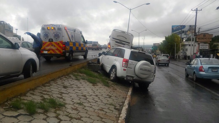 Debido a las condiciones climatológicas, así como a la imprudencia de los conductores, esta mañana se registraron varios accidentes vehiculares sobre diferentes arterias de la ciudad, entre dichos hechos, hubo la volcadura de un tráiler, además de un fuerte choque de un camión de pasajeros en la Avenida 5 de Febrero, casi al llegar a Zaragoza.