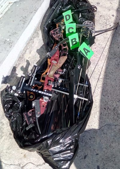 Asimismo, haciendo uso del procedimiento de Cadena de Custodia se aseguraron 13 arcos de tiro profesionales, 143 flechas de diversas dimensiones y varios accesorios profesionales para la arquería.