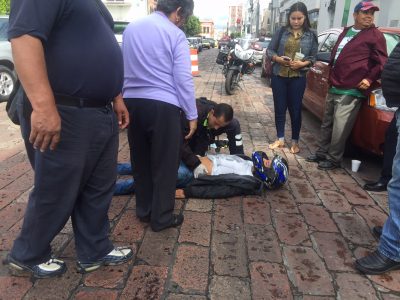 El joven motociclista quedo tendió en uno de los carriles de esta importante vía municipal, el incidente genero un intenso tráfico en esta zona del Centro Histórico.