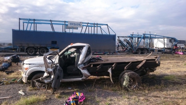 El siniestro fue tal que la colisión aventó a varios de los ocupantes que viajaban en la batea de la unidad, además de que el pesado tráiler se llevó a otras personas entre las llantas.