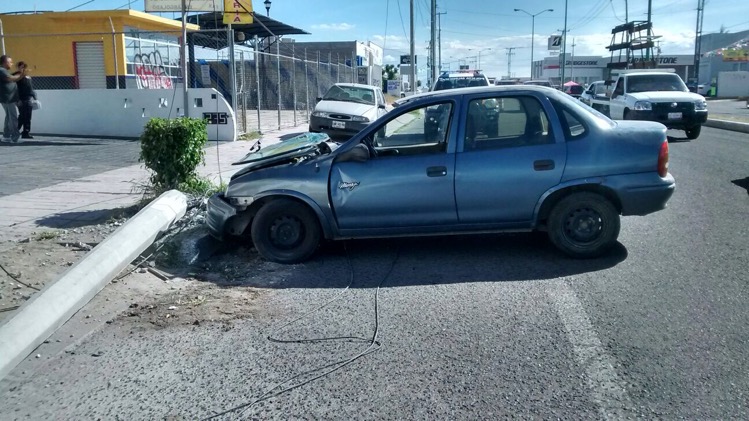 Aparatoso accidente en avenida Sombrerete deja a una persona lesionada. Esto luego de que la conductora de un automóvil chocó contra un poste al perder el control de la unidad.De acuerdo con fuentes policiales en el sitio del hecho, la conductora iba a exceso de velocidad y debido a ello salió de la cinta asfáltica y chocó el poste de concreto.