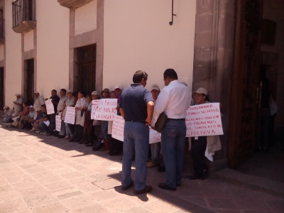 Desde temprana hora, Trabajadores del Sindicato al Servicio del Municipio de Cadereyta de Montes, se manifestaron frente a Palacio de Gobierno para solicitar el pago de descuentos por concepto de cuotas y prestamos, a decir de Arón Reséndiz Martínez, representantes del gremio sindical,  son ya más de 14 semanas las que les adeudan.
