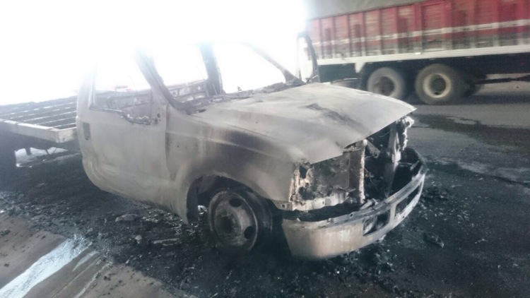 La camioneta de capacidad para 3.5 toneladas quedó completamente quemada por el siniestro que se presentó en el sitio.