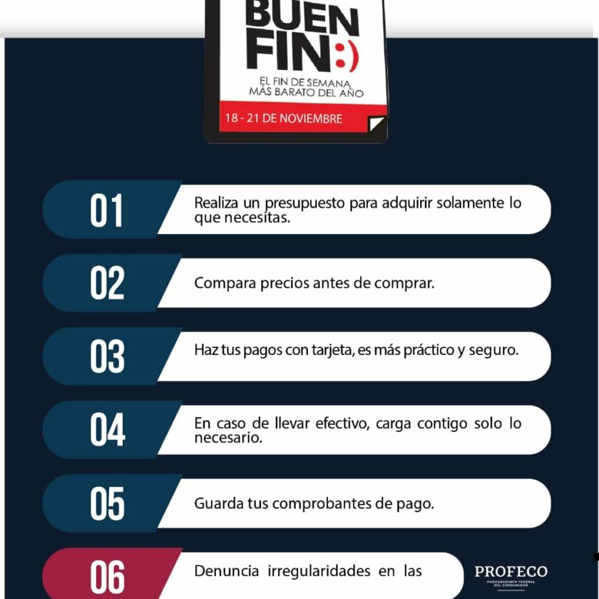 El Buen Fin se llevará a cabo del 18 al 21 de noviembre, y se invita a los consumidores que adquieran productos en línea, hagan uso de su tarjeta digital para que la compra