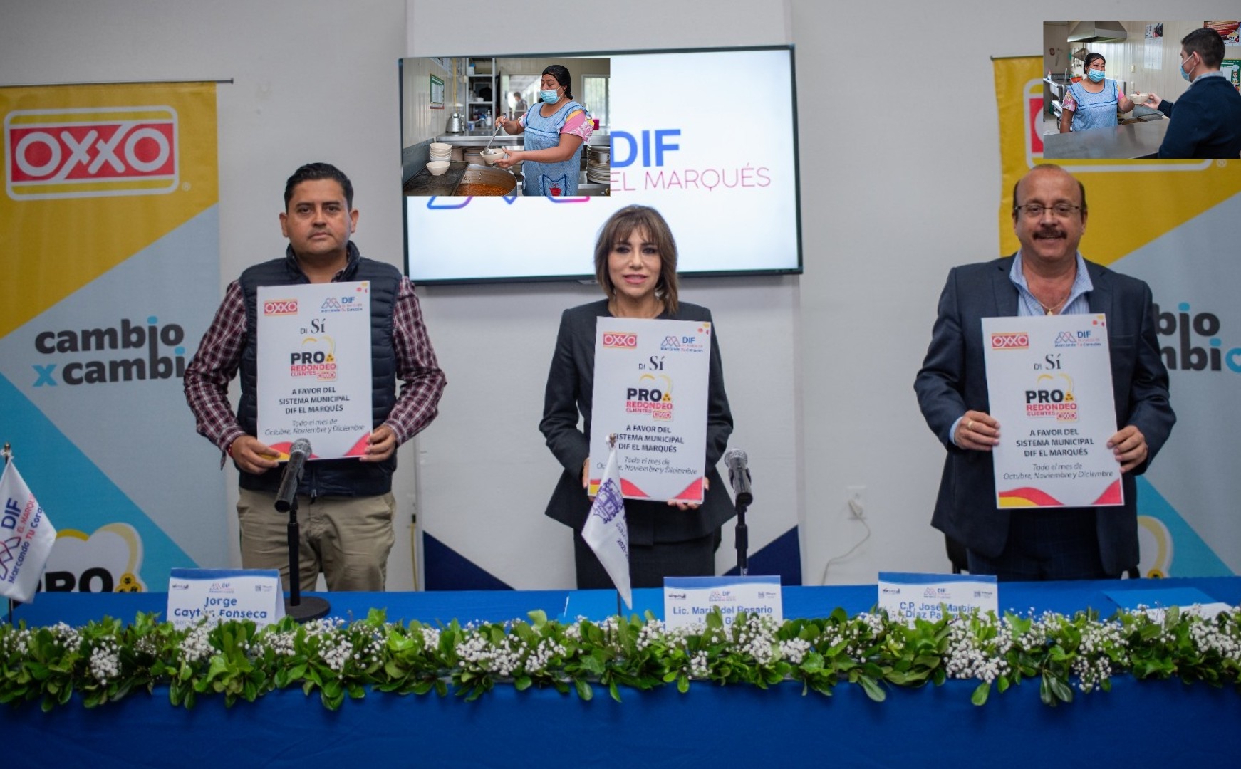 Como parte de los esfuerzos para mejorar la alimentación y calidad de vida de las niñas y niños de El Marqués, el Sistema Municipal para el Desarrollo Integral de las Familias (SMDIF), de El Marqués, en coordinación con las tiendas OXXO, presentaron el Programa de “Redondeo OXXO”, que destinará lo que se recaude para beneficio de más seis mil 800 niños, de 88 centros escolares en El Marqués.