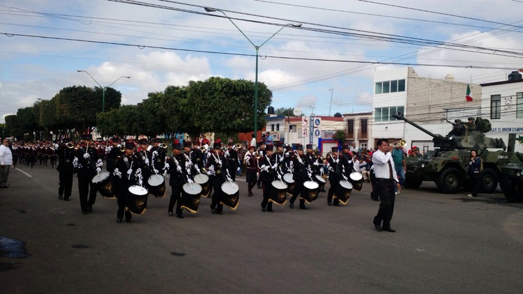 Aproximdamente 3 mil personas divididas en 15 columnas integran el desfile, entre las que destaca la.participación del Ejército, Policia Federal Estatal y Municipal asi como elementos del H. Cuerpo de Bomberos y de la Cruz Roja, ademas de estudiantes de escuelas primarias y secundarias.