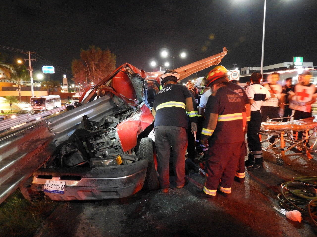 El hecho motivó la inmediata reacción de los cuerpos de emergencia, entre ellos paramédicos de la Cruz Roja, CRUM, así como policías municipales y luego Bomberos de Querétaro, quienes al llegar se encontraron con el conductor se encontraba prensado.