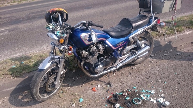 Hombre de entre 55 y 60 años de edad cayó de forma aparatosa al circular a velocidad excesiva en el Boulevard Bernardo Quintana a la altura del trébol de la Avenida 5 de Febrero