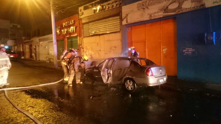 Un vehículo compacto, tipo sedán, quedó consumido por el fuego en la calle Prolongación Tecnológico, cerca de Avenida San Roque, esto durante la madrugada de este domingo, cerca de las 3:00 horas.