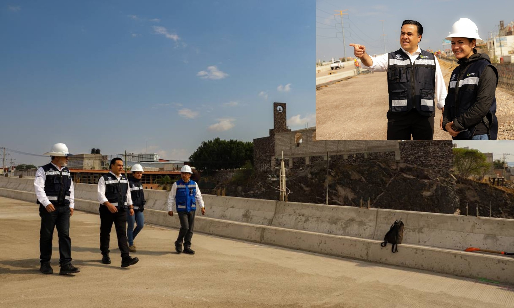 Luis Nava, Presidente Municipal de Querétaro, en conjunto con la Secretaria de Obras Públicas Municipales, Oriana López Castillo, supervisó los avances en la construcción del Paso Superior Vehicular de prolongación Bernardo Quintana en la colonia San Pedro Mártir, con un avance del 85 por ciento .