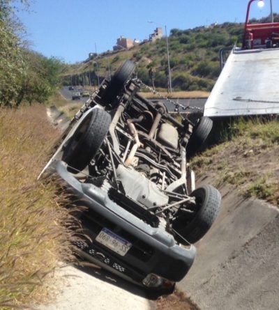 Aparatoso accidente se registró en Boulevard de la Nación en donde una camioneta quedo volcada, según el conductor de la unidad, conducía en dirección a Sombrerete cuando perdió el control del volante en una curva, generando que saliera del camino. Se presume que el exceso de velocidad genero este percance, automovilistas que pasaban por el lugar dieron aviso al número de emergencia 911. El conductor no presentaba lesiones de consideración, fue necesario cerrar el carril de alta para poder realizar los trabajos para el retiro de la unidad, para lo…