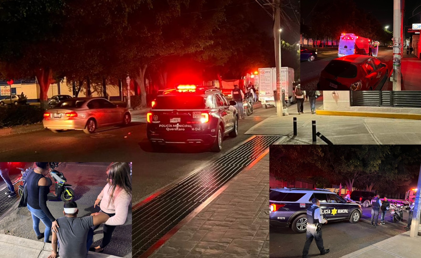 Dos estudiantes de la facultad de medicina de la UAQ fueron alcanzados por un motociclista cuando intentaban cruzar Avenida Tecnológico, en la capital queretana. Este incidente provocó la movilización de los cuerpos de emergencia, algunos testigos, aseguran que los estudiantes cruzaron de manera imprudente.Los hechos se registraron a la altura de la colonia Niños Heroes, un estudiante fue trasladado a un hospital para su atención médica, su compañero solo presentaba lesiones leves. El motociclista fue detenido por parte de la policía municipal mientras se deslindan responsabilidades.