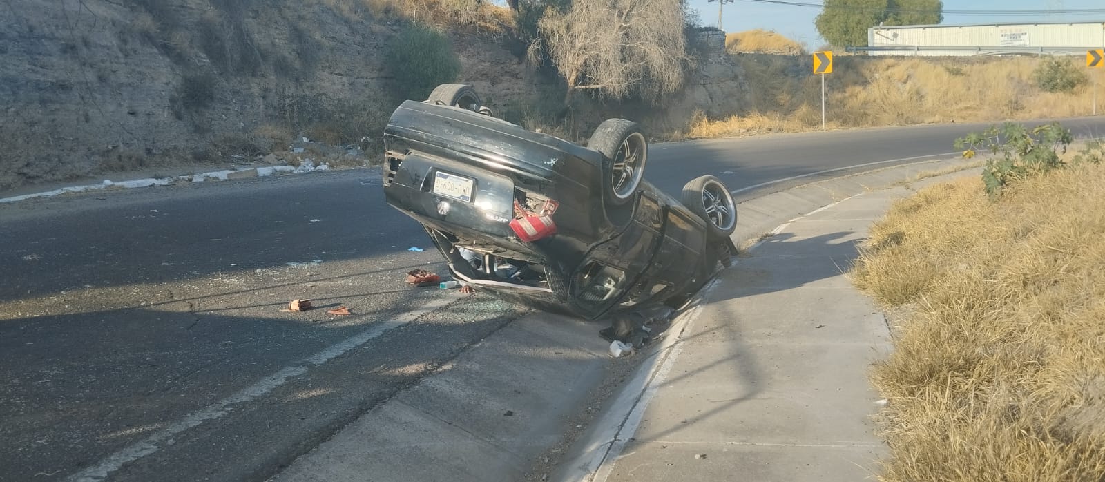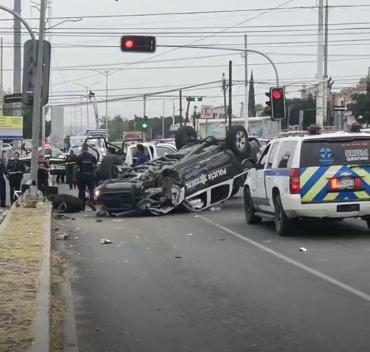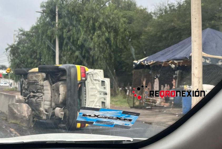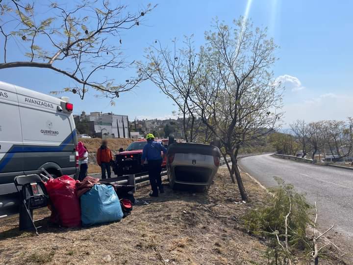 Fuerte accidente vehicular tipo volcadura, se registró esta mañana sobre el anillo vial Fray Junípero Serra, al cual por fortuna sólo dejó daños materiales.