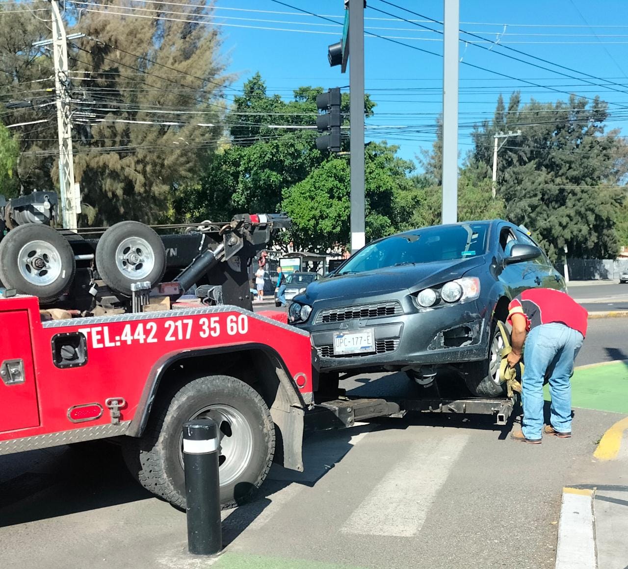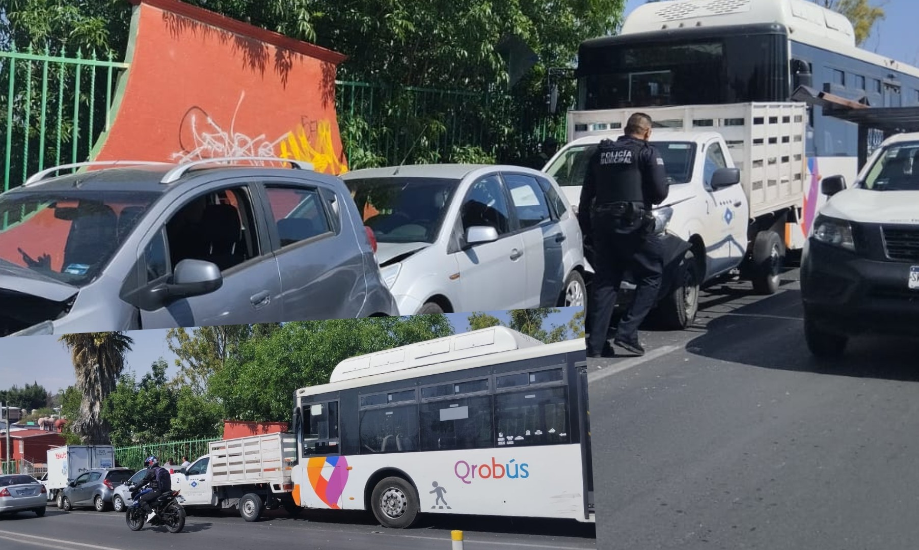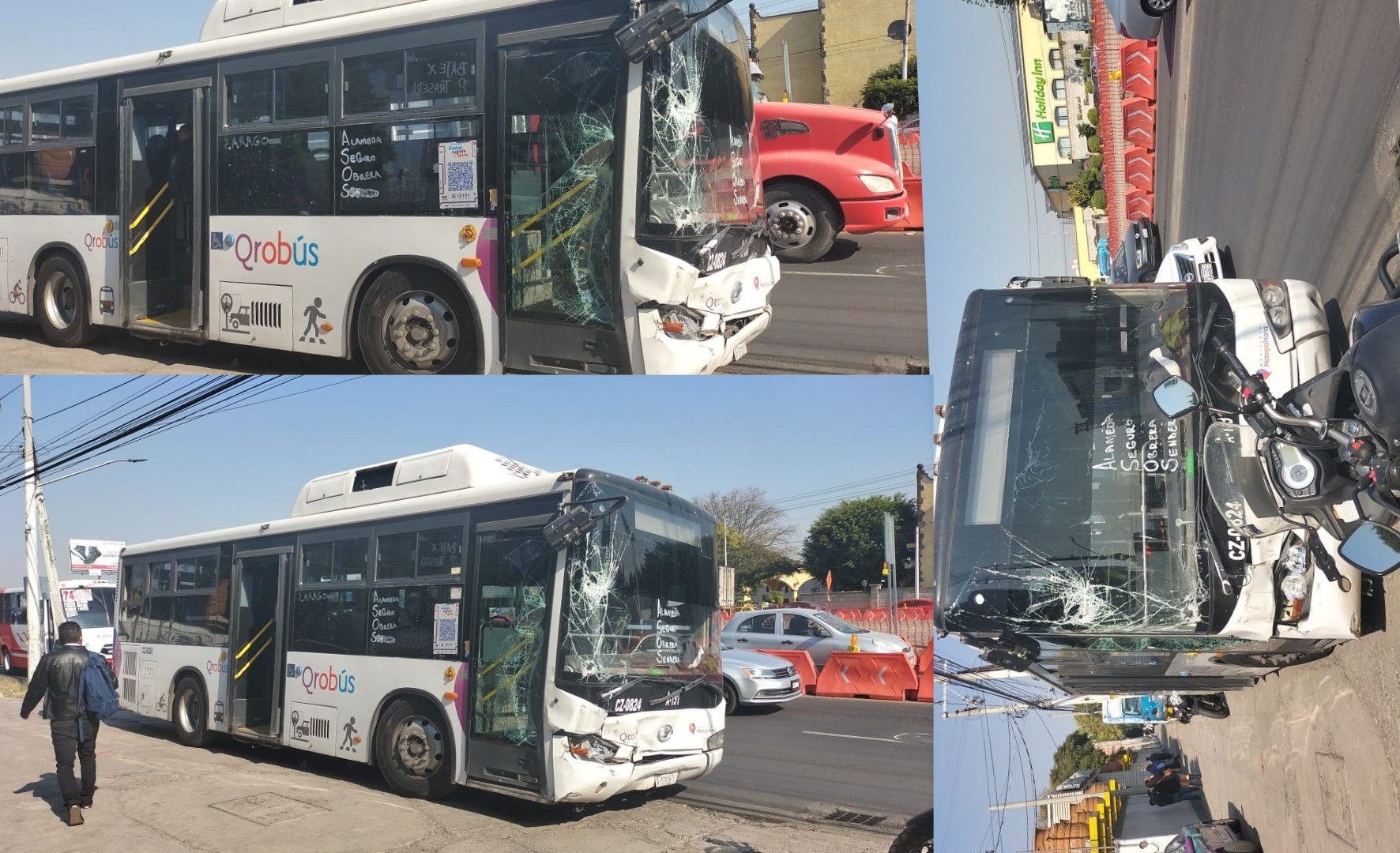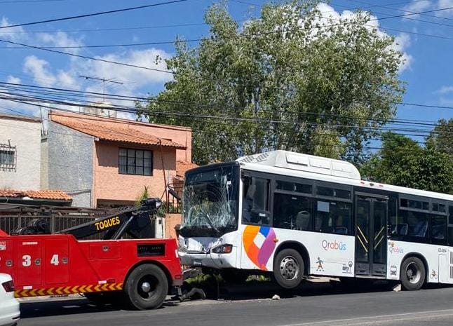 Unidad de Qrobús impactó a una camioneta en Avenida de la Luz
